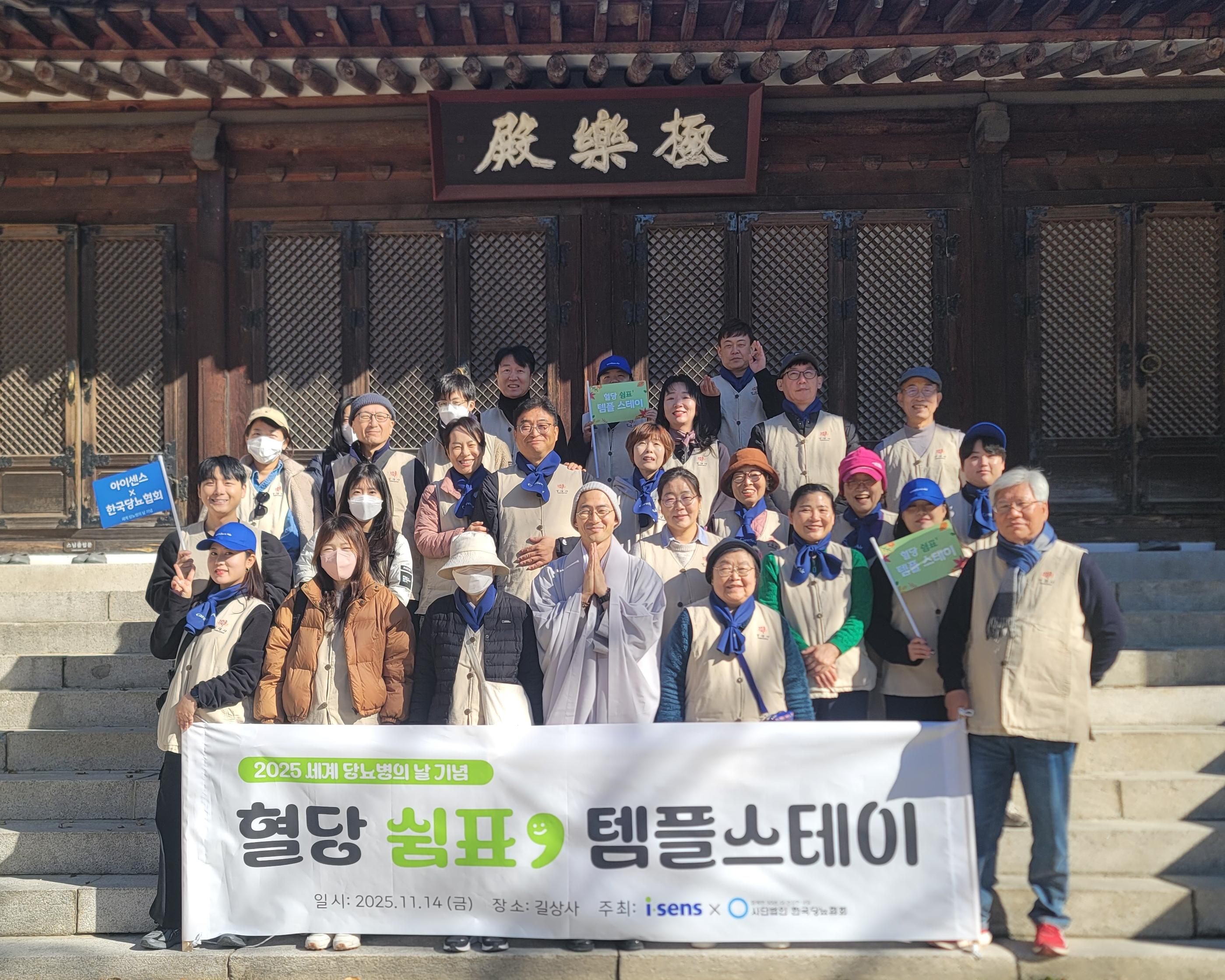 지난달 14일 ‘세계 당뇨병의 날’을 맞아 아이센스가 (사)한국당뇨협회와 함께 진행한 ‘혈당 쉼표, 템플스테이’ 참여자들의 모습이다.